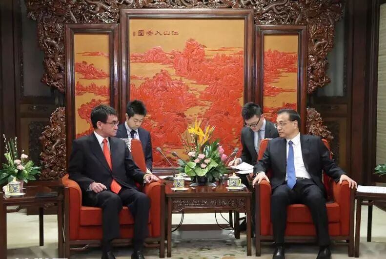 国务院总理李克强28日下午在中南海紫光阁会见来华进行正式访问的日本外相河野太郎。