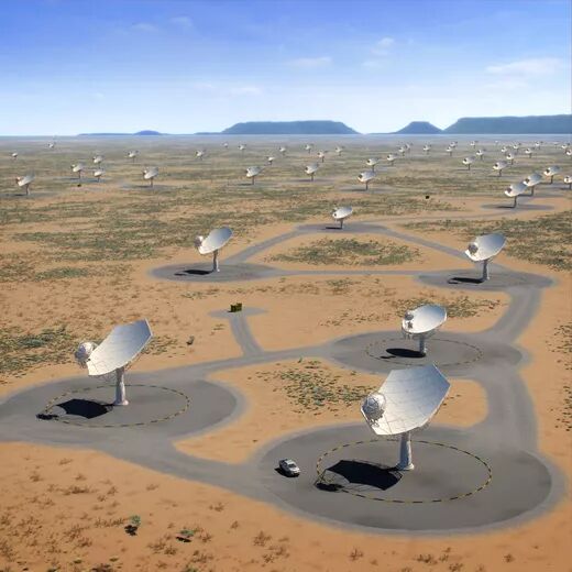 SKA选址在澳大利亚、南非及非洲南部8个国家的无线电宁静区域, 将在约3000公里的广袤荒野中,建设2500面15米口径反射面天线。组成阵列的射电望远镜总接收面积达一平方公里,相当于140个足球场大。