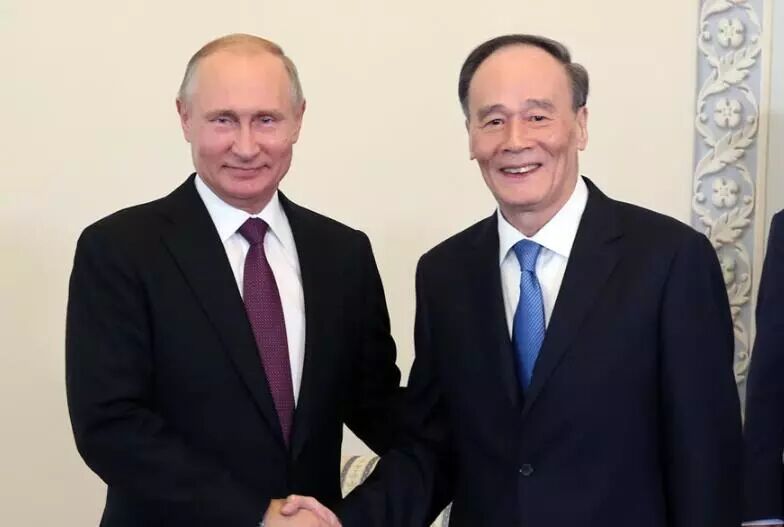 王岐山首先转达了习近平主席对普京的诚挚问候和良好祝愿。他说,习近平主席高度重视中俄关系,珍视与普京总统的友谊,期待着同你再次会晤,共同规划中俄关系和上海合作组织下一步发展。