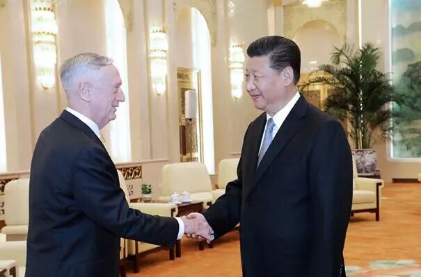 马蒂斯感谢习近平的会见,表示美方高度重视两国两军关系,两军关系在两国关系中的地位作用至关重要。美方愿以美中两国元首重要共识为引领,加强战略沟通,扩大互利合作,管控分歧风险,避免冲突对抗,使两军关系成为推动两国关系发展的建设性因素。